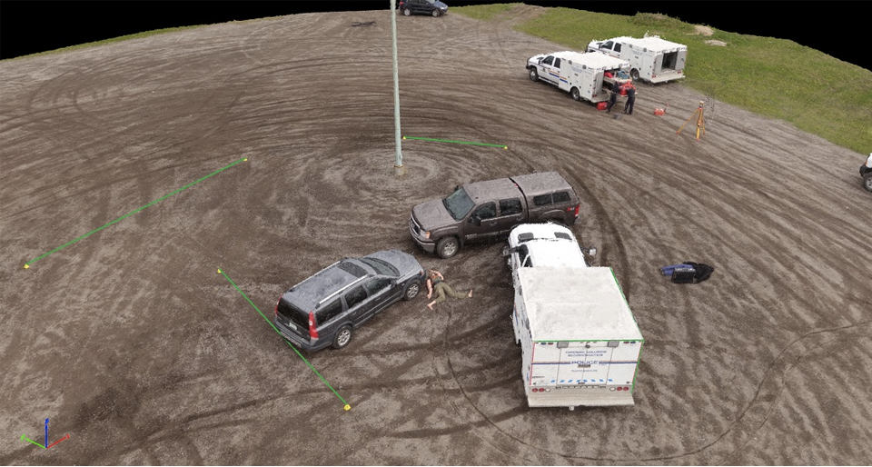 區(qū)別于傳統(tǒng)交通事故中使用人工丈量、手工繪制和相機(jī)拍照的勘查取證方式,使用無人機(jī)搭載高分辨率攝像機(jī), 可以快速取得事故現(xiàn)場的多角度立體影像,使用啟飛應(yīng)用的事故處理專業(yè)軟件,可以快速生成現(xiàn)場的平面圖和立體三維模型圖, 并可在軟件中直接測量相關(guān)的長度、體積等參數(shù),從而大幅提高交通執(zhí)法的效率和準(zhǔn)確性。